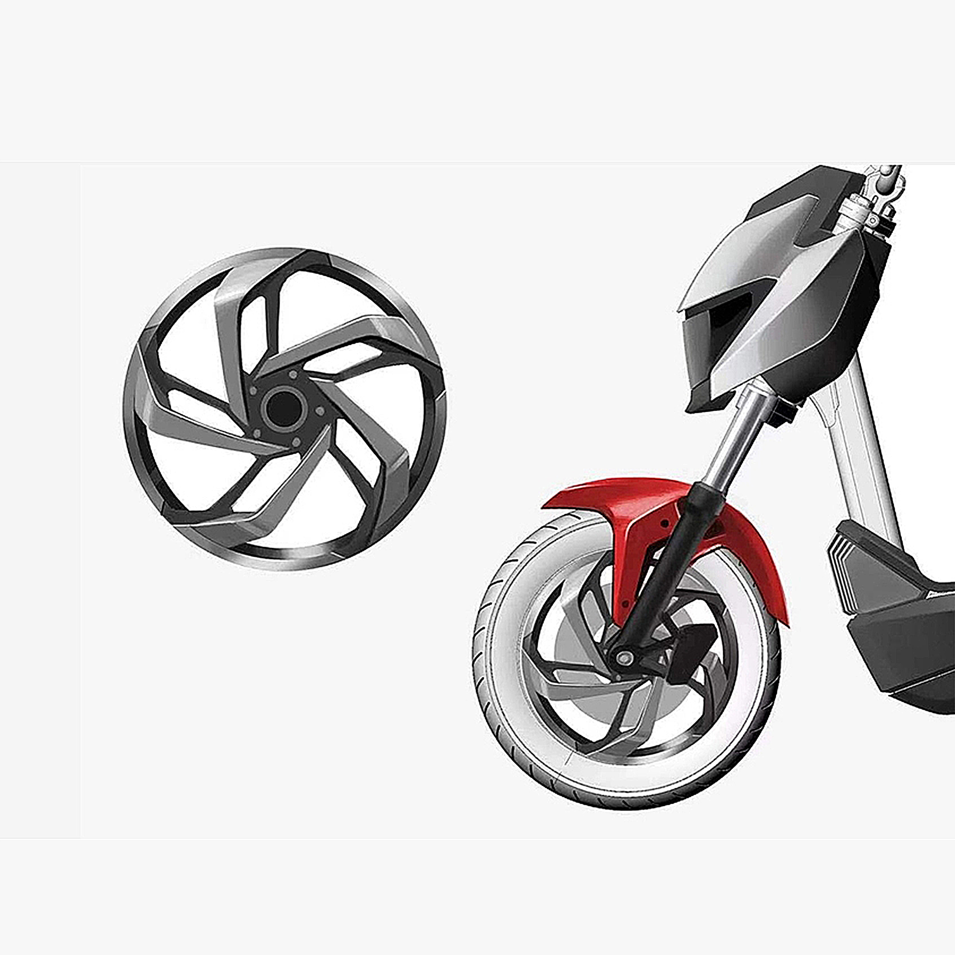 風格探究二:智酷極客。運用幾何要素分割,鏤空的形態,使得整體看起更為輕便,營造出電動車更為時尚智酷的氣息。