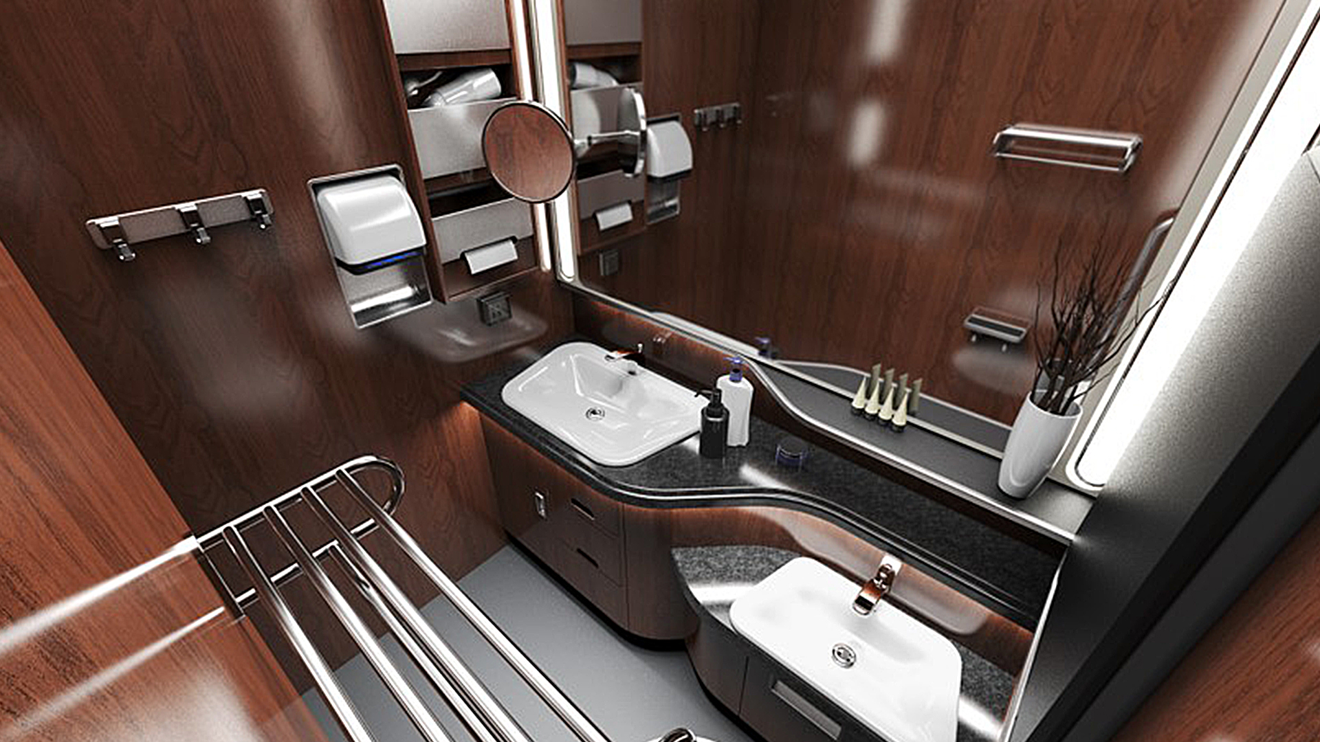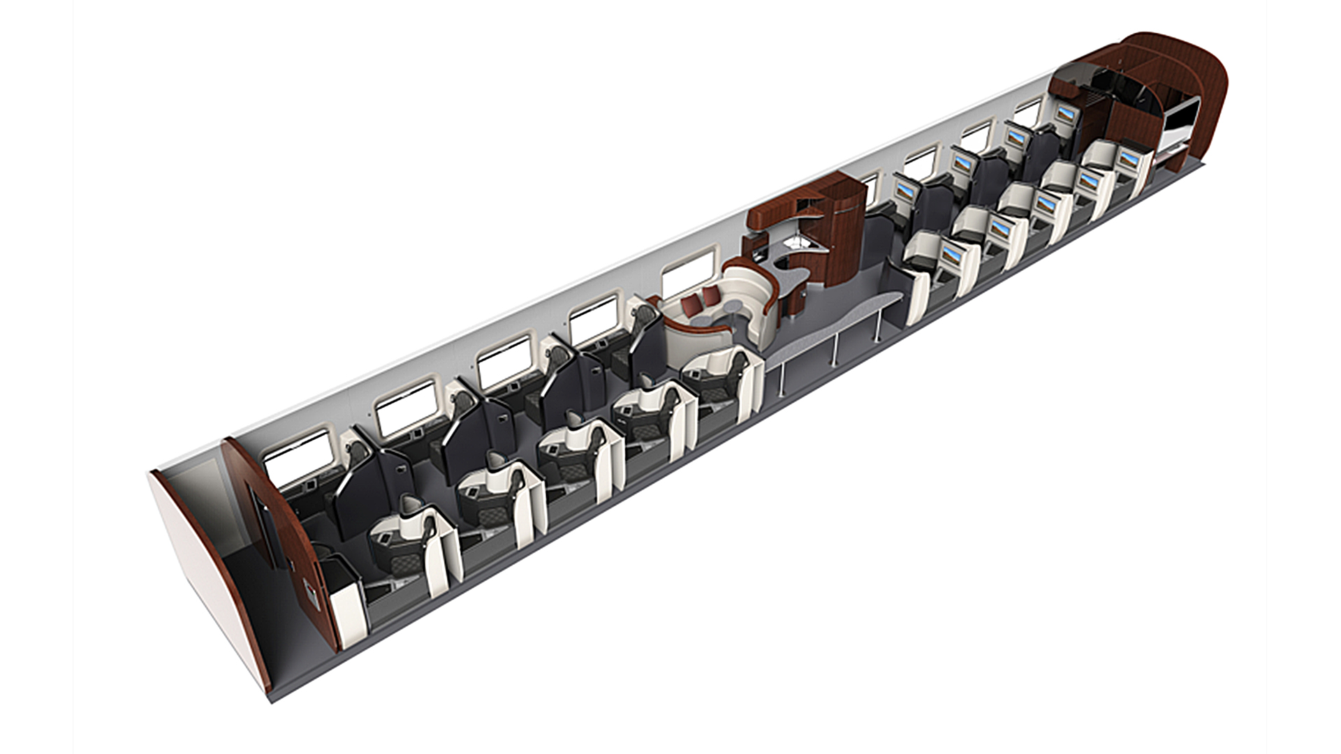 新設計按乘坐、用餐、乘務、洗手間、行李存放的功能劃分為5個區域,每個區域都配備了完整的功能設施。