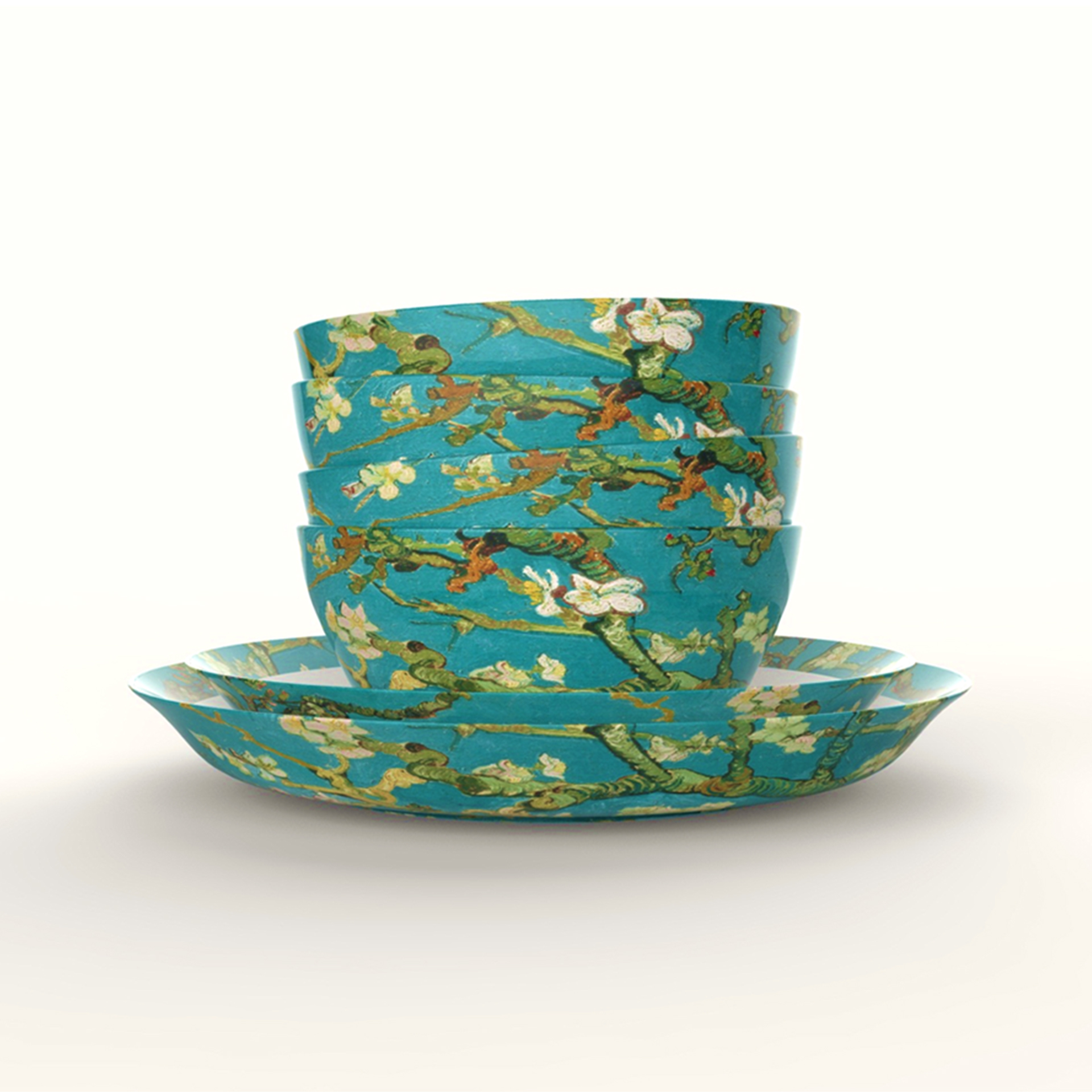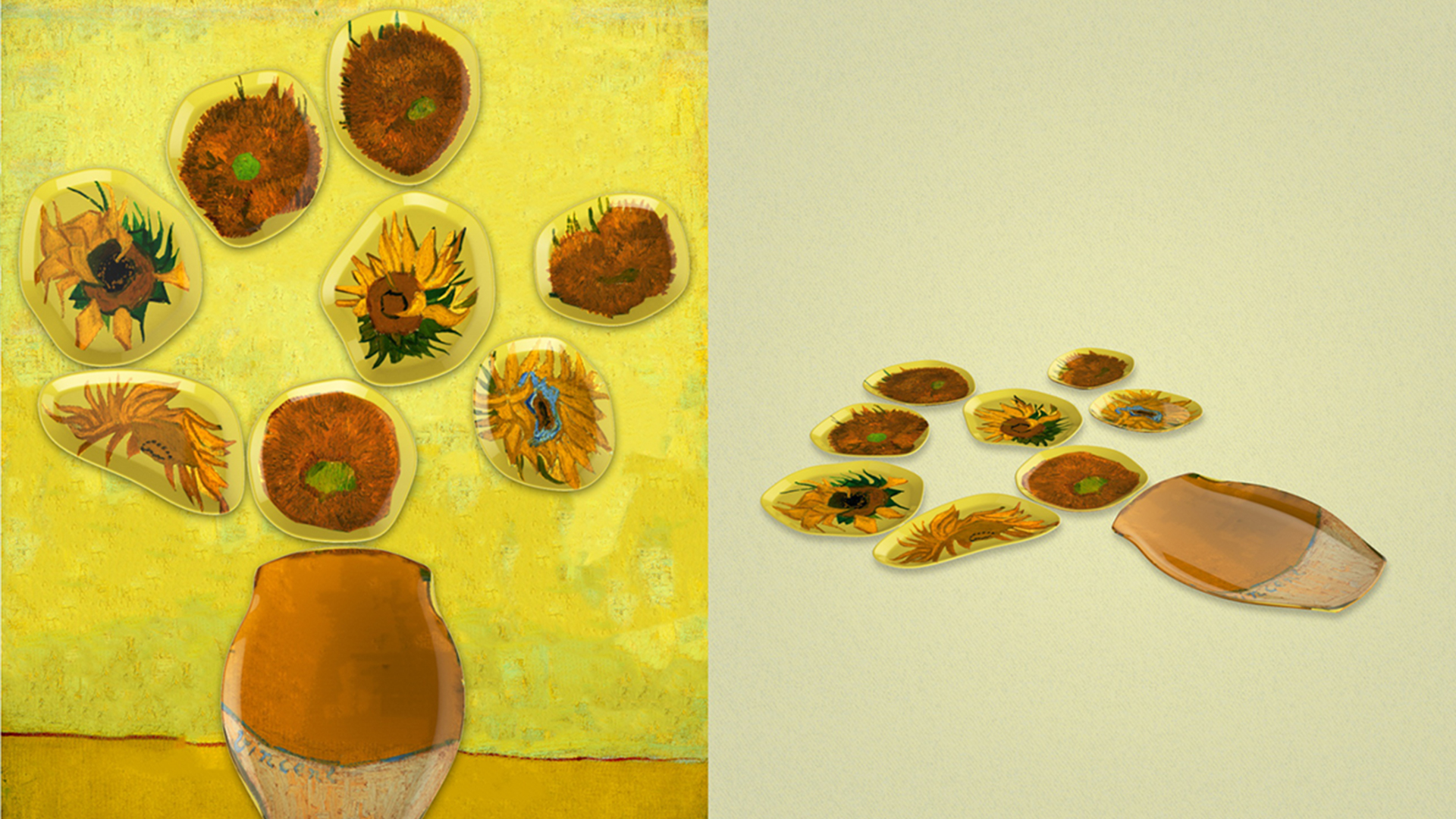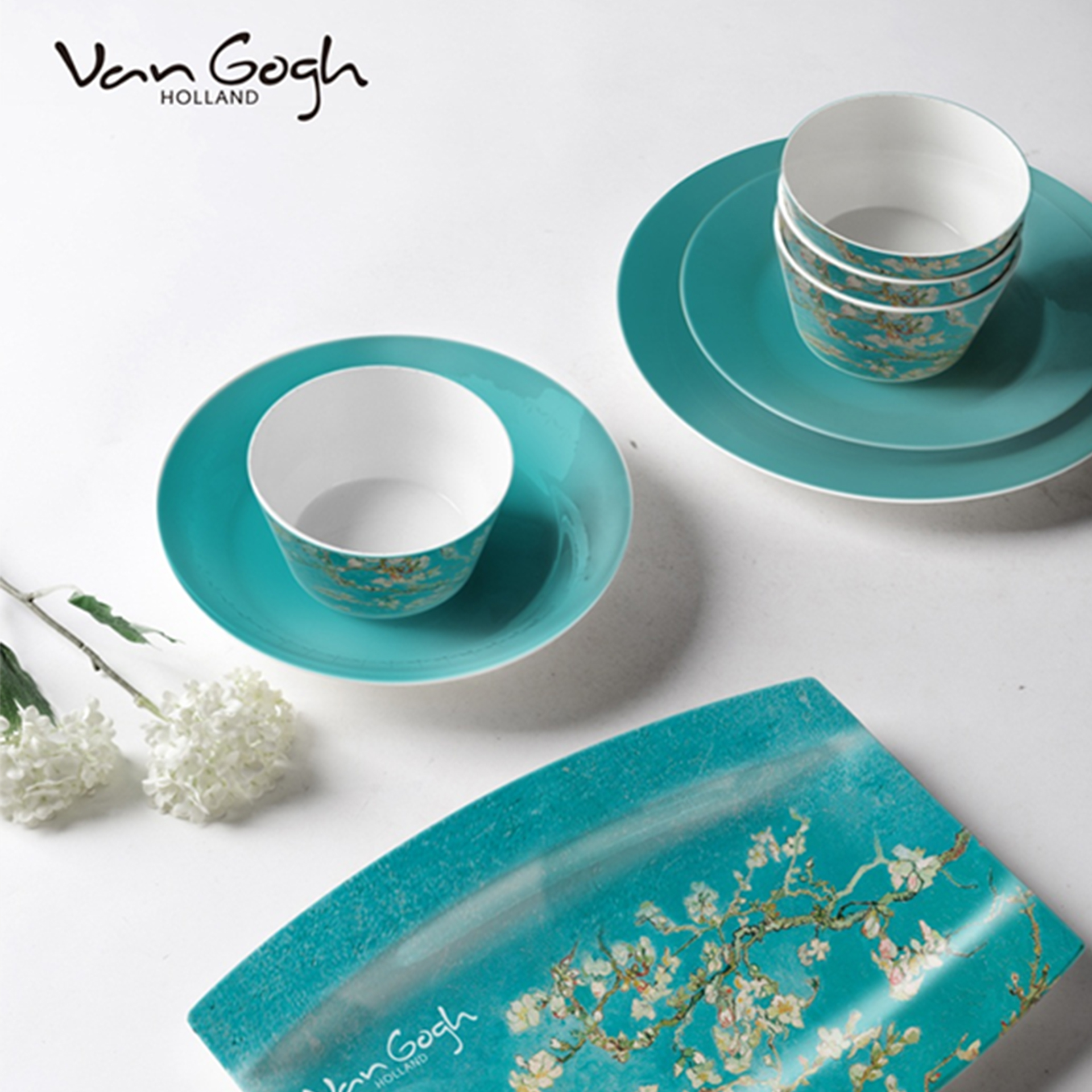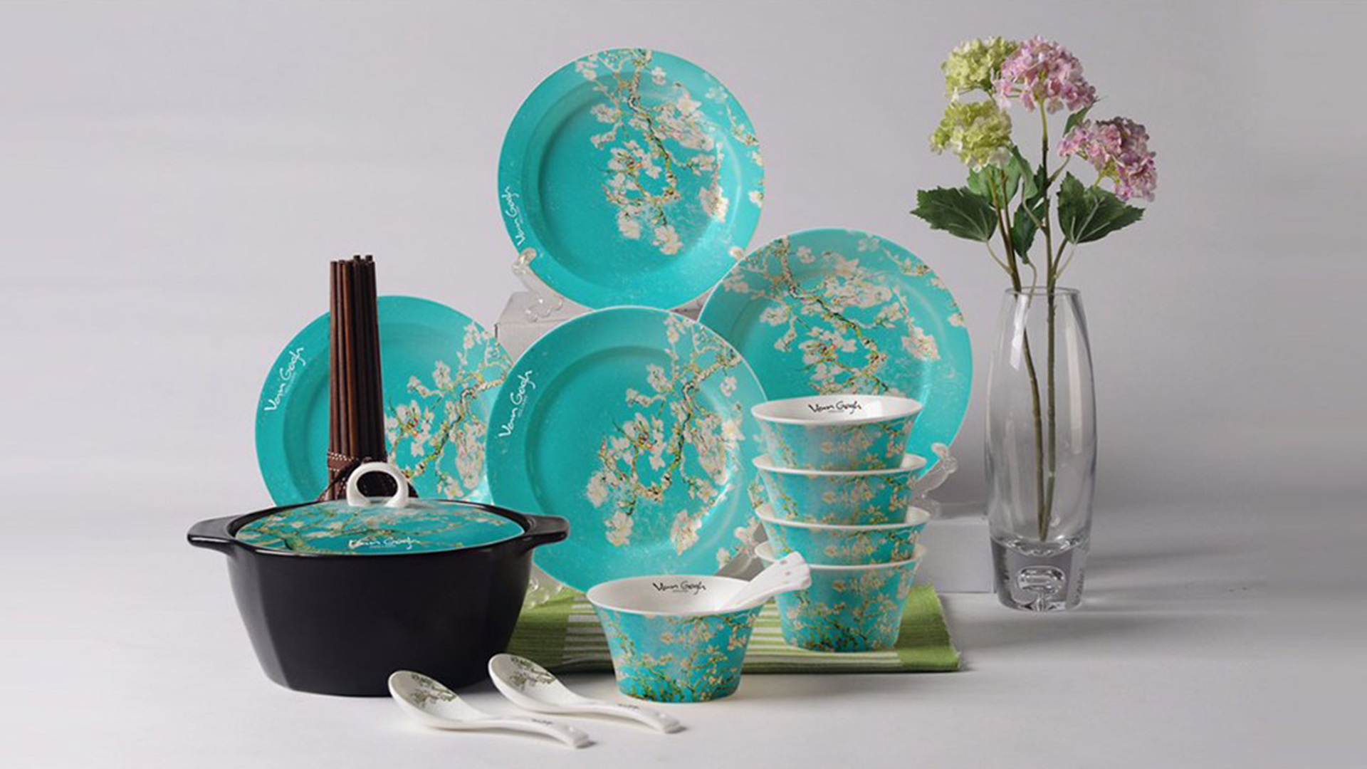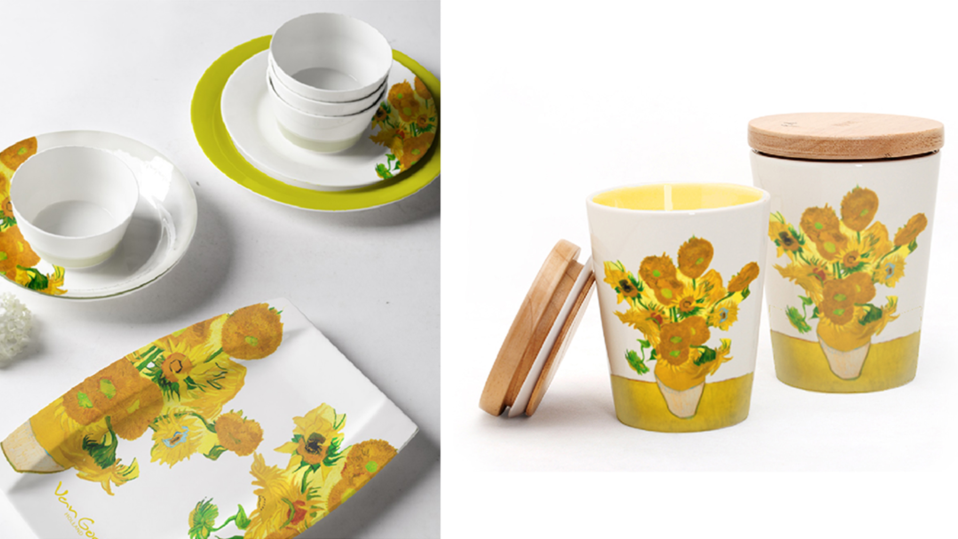 梵高作品的熱浪似乎沒有因為年代的久遠而平息,每每提起,依然可以激起我們的熱情。木馬設計師們從梵高大量著名畫作中提取元素,選出八幅畫作作為主題:向日葵、盛開的杏樹、鳶尾花、雷雨云下的麥田、麥田群鴉、花園中求偶的戀人、黃房子,以及自畫像。我們提煉八幅作品中的代表性元素,與產品完美融合。在設計過程中,設計師們嚴格按照版權要求,細致設計、多次調整所用圖案的色調、面積、排布等細節。最終獲得的產品涵蓋枕墊、餐具等家居飾品,以及多種數碼周邊產品。