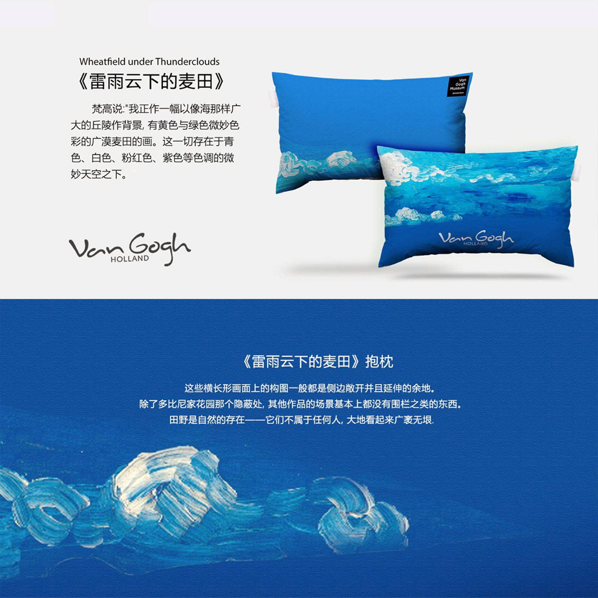 木馬設計聯合天貓眾籌平臺,與天貓數十家商家合作,以梵高博物館正版授權的梵高八大作品為藍本,創作正版限量系列藝術衍生品,作品包括枕墊、杯具、鼠標、窗簾、手包等一系列家居飾品。