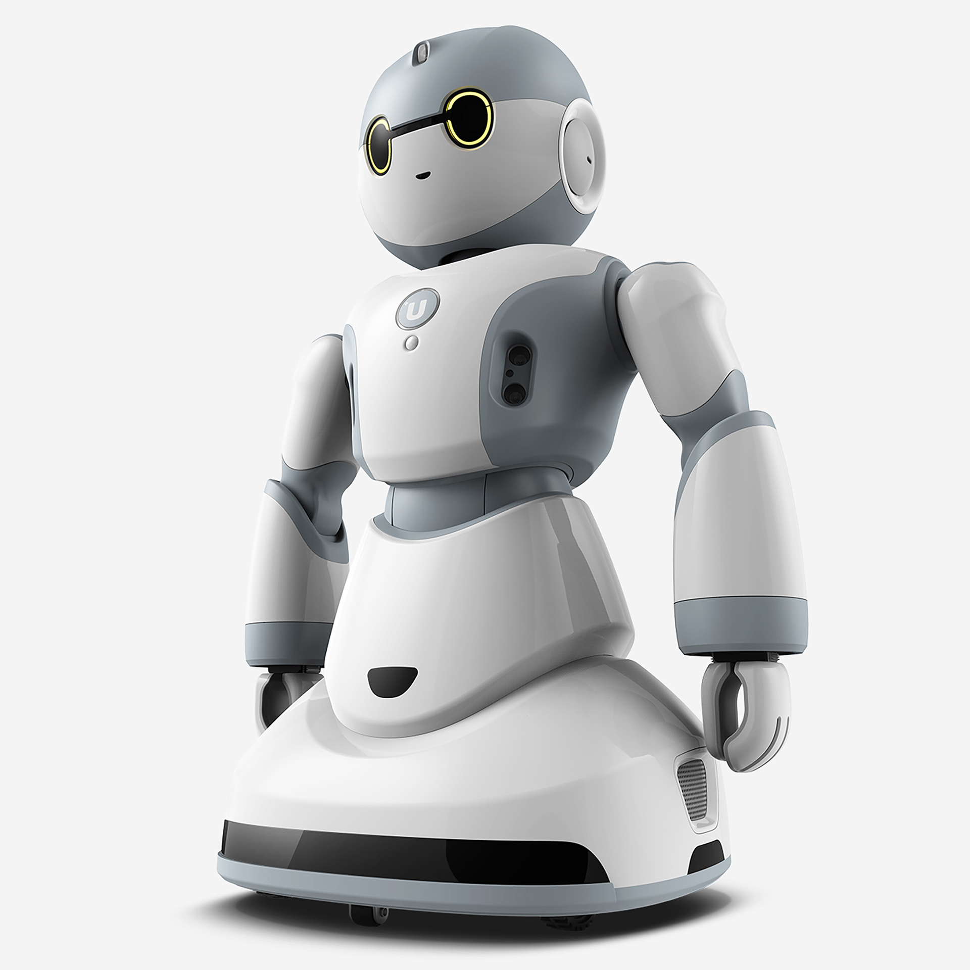 這款Ubot家庭智能機器人定位于家庭使用,具備親和力的外觀設(shè)計,讓小朋友、大朋友都能夠喜歡上他,60厘米高度設(shè)計,讓他成為孩子的“小伙伴”,仿人類的雙臂可以做出各種情感表達的動作。