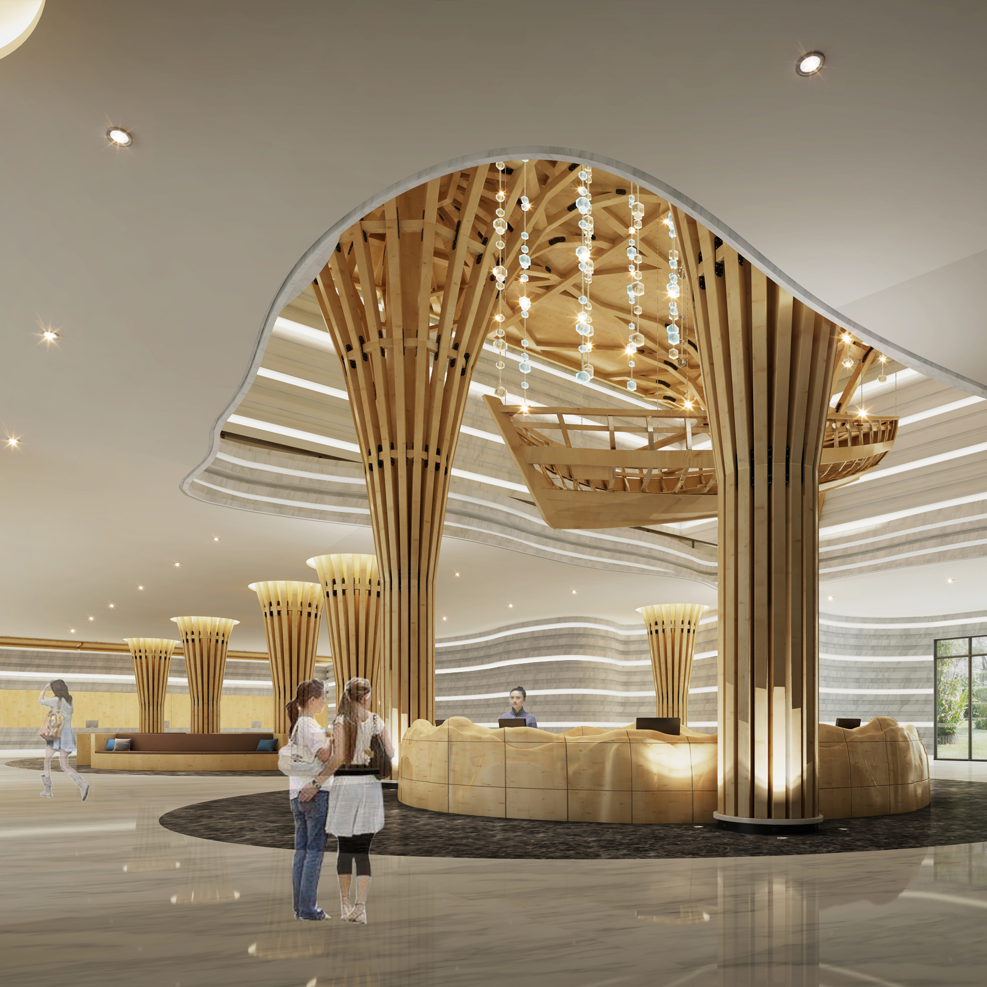 松蘭山海濱旅游度假區是華東地區集休閑、娛樂、度假、會議等為一體的綜合性海濱旅游度假區。因此在游客服務中心的室內設計上,在確立主要基調的前提下,將人文精神具象的延伸和表達,同時結合當地文化符號,成為景區品位和管理水平的集中體現,為景區游客提供更優質的服務和環境。