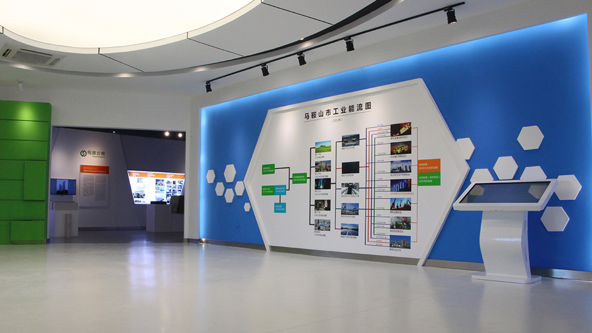 馬鞍山節能環保中心展示面積為3160平米,分為上下兩層區域展示,每層展示面積為1580平米。