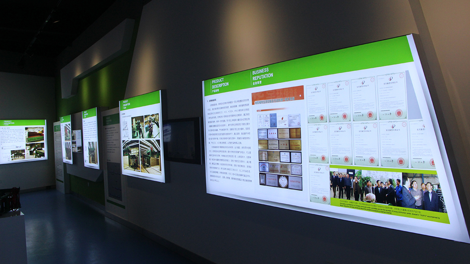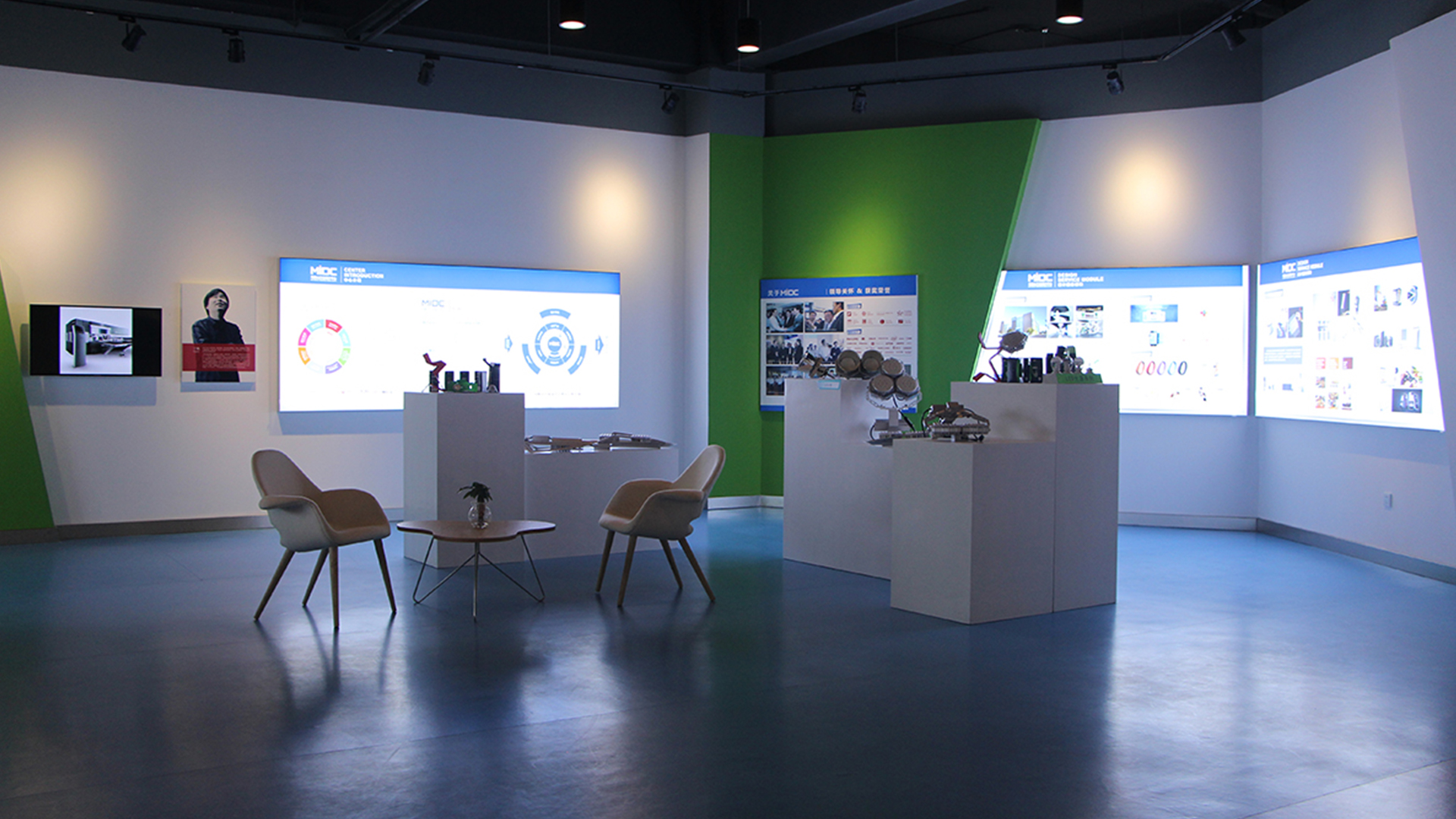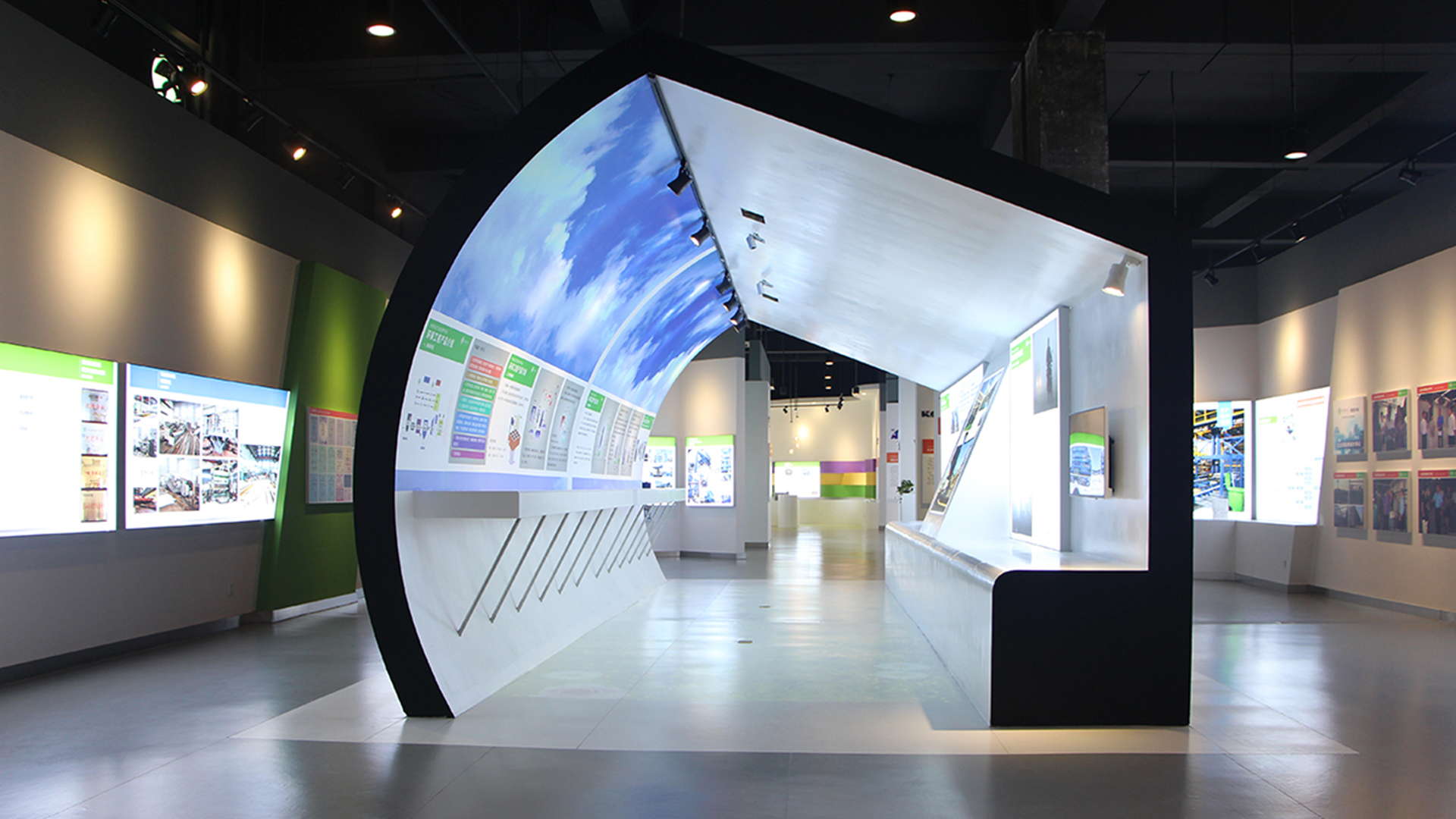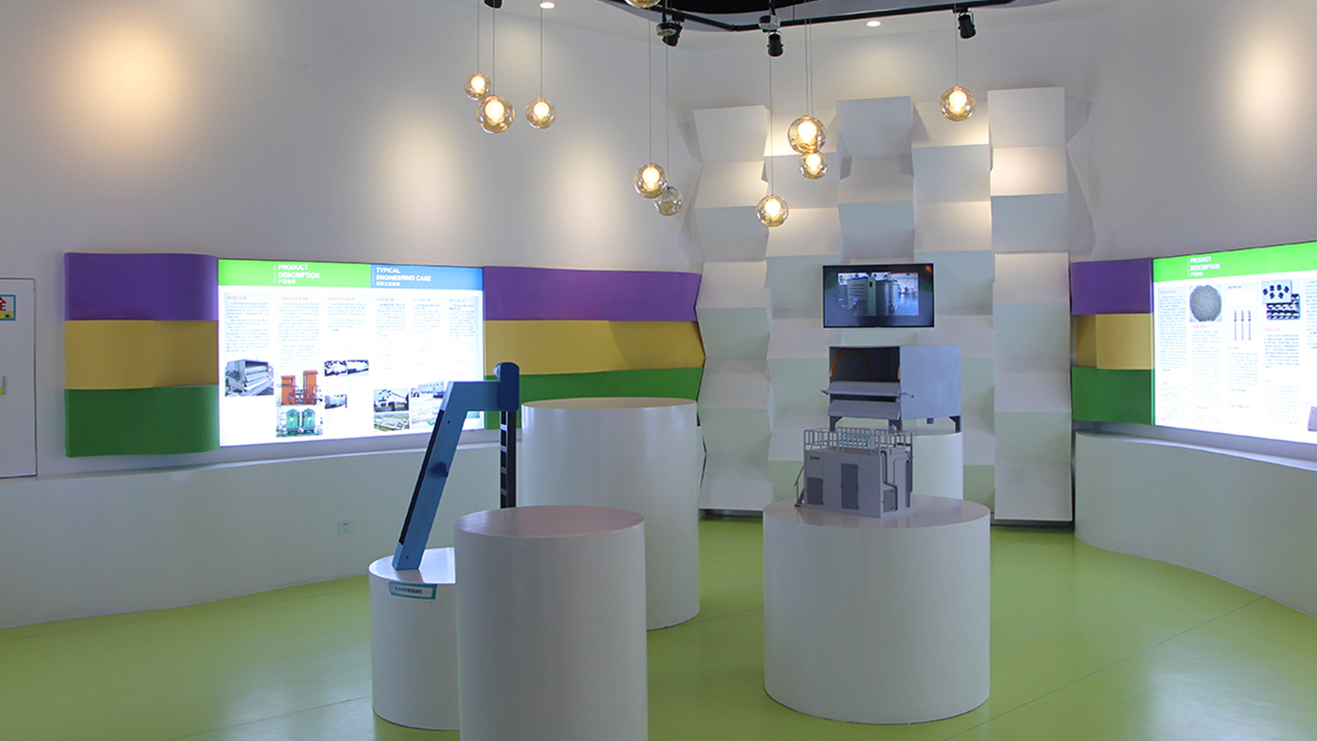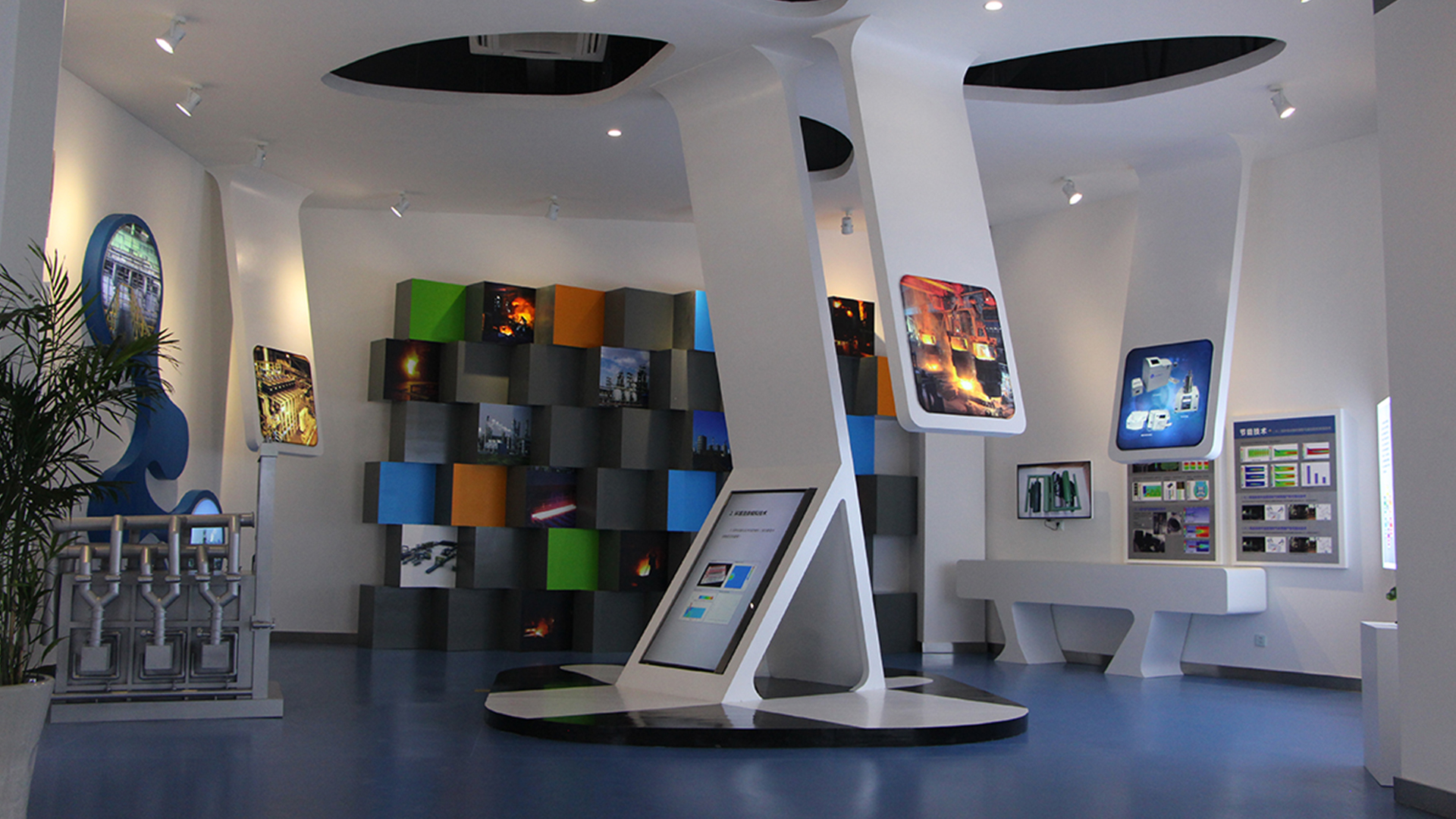 設計的原則把握主軸貫穿、分區展示、突出主題、打造重點;充分利用色彩傾向表現各企業性格;充分考慮觀眾與企業互動、認識企業、了解企業、宣傳企業。