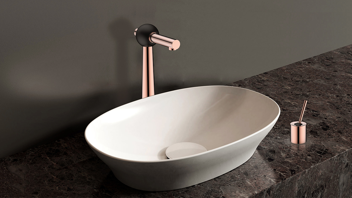 O-Time系列水龍頭追隨著少即是多的理念,以極簡的幾何形體塑造出一種極致的視覺體驗。以20世紀初俄國構成主義風格為設計靈感,采用金屬管、塑料球等簡單幾何形體,通過組構拼合的方式完成水龍頭的基礎形態(tài)設計。