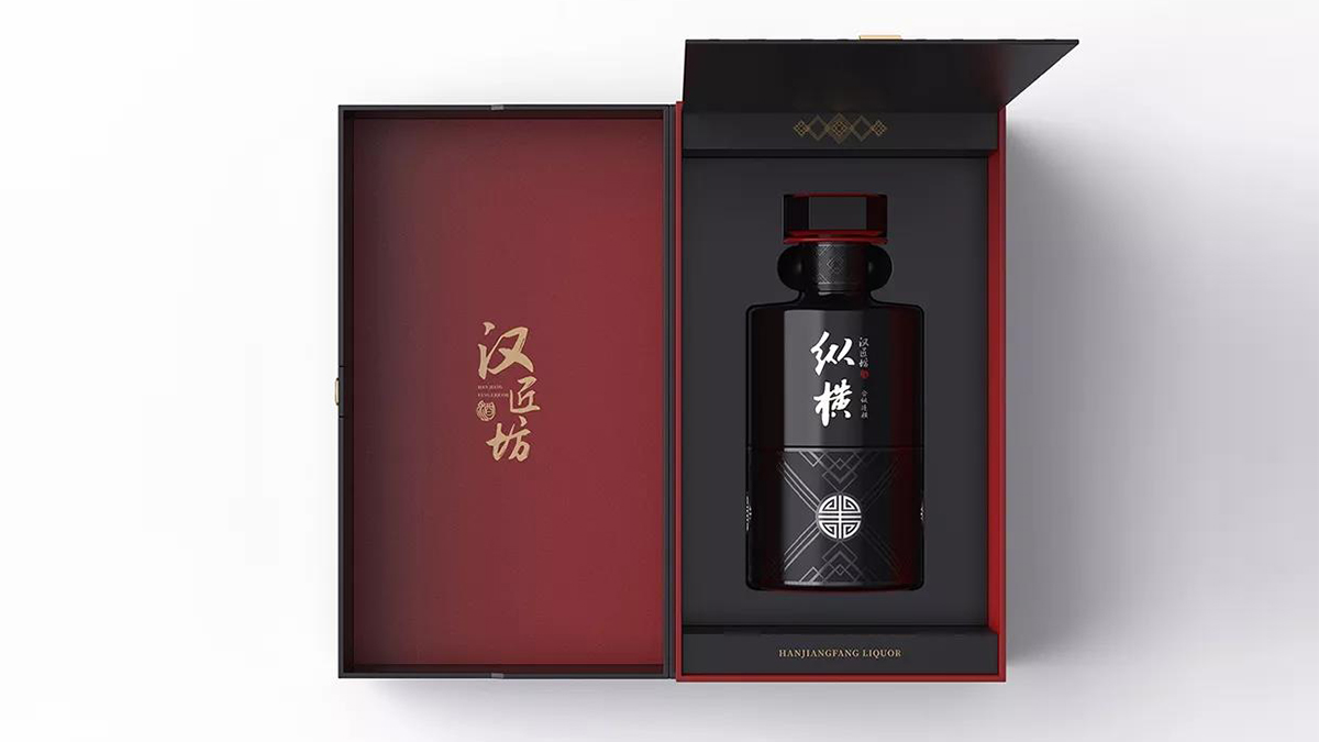 縱橫家是謀圣鬼谷子創立的學術流派,在戰國時期以從事政治外交活動為主的一派,《漢書?藝文志》將其列為“九流十家”之一。底部創新的采用硅膠墊設計,縱橫交錯的紋理呼應縱橫系列主題。包裝盒的設計采用經典的書本盒形式,增加產品打開的儀式感,包裝盒表面采用模壓的工藝壓出縱橫交錯的紋理;酒標牌采用金屬光毛面對比的形式,豐富產品視覺特征,從而提升產品附加值。